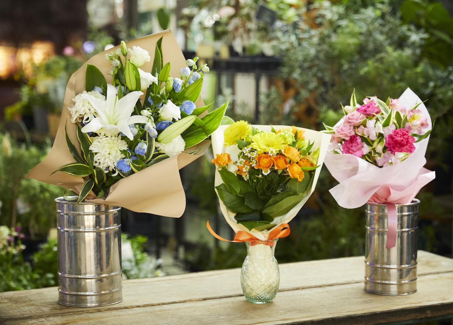 市場から直接仕入れる新鮮な花々をその日のうちにお客様にお届けします。